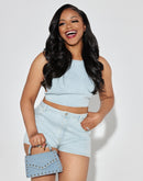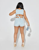 This cute and trendy 2-piece denim set is perfect for brunch or any fun occasion. The crop top and shorts combination is both stylish and versatile, making it a must-have in your wardrobe. Elevate your fashion game with this fun set!